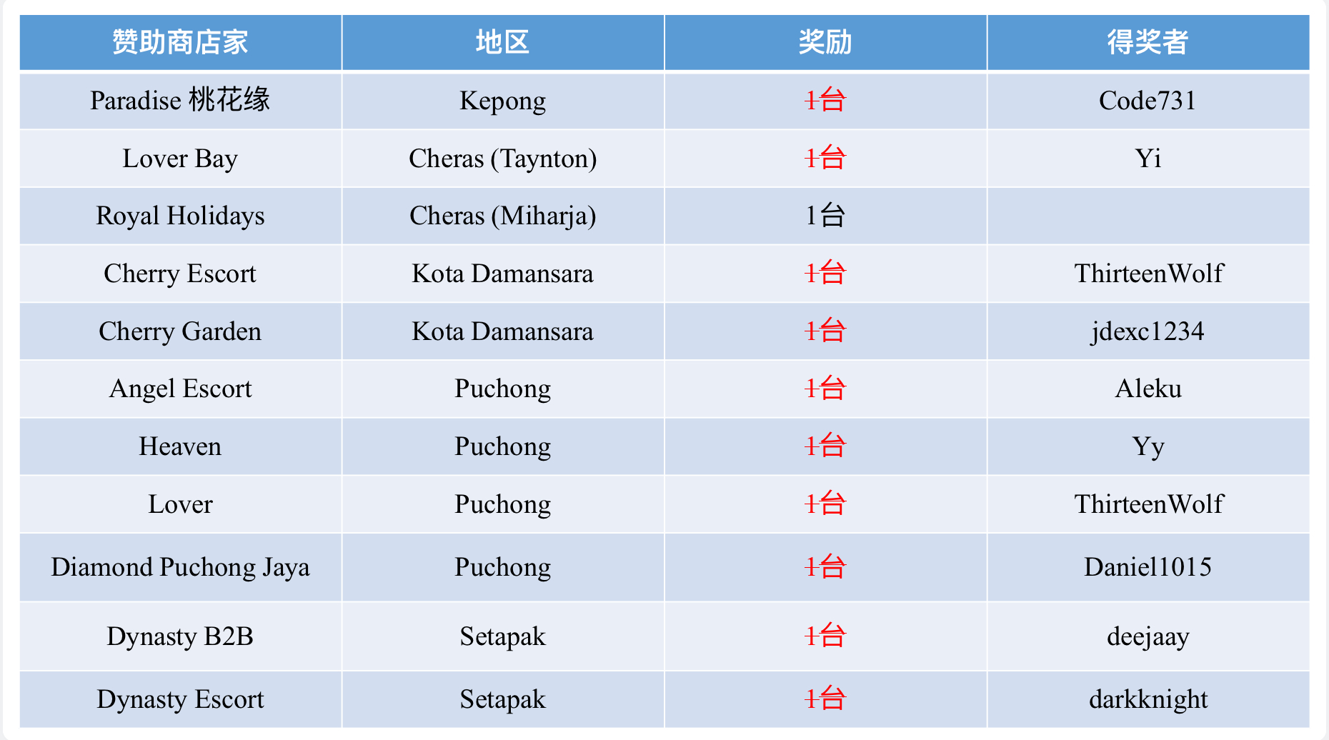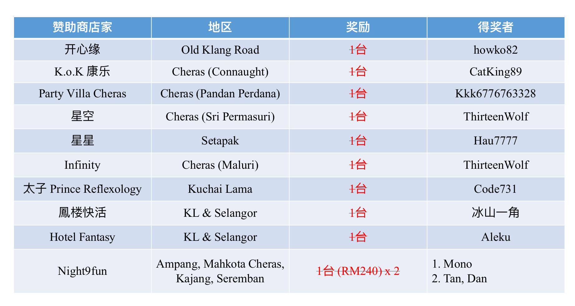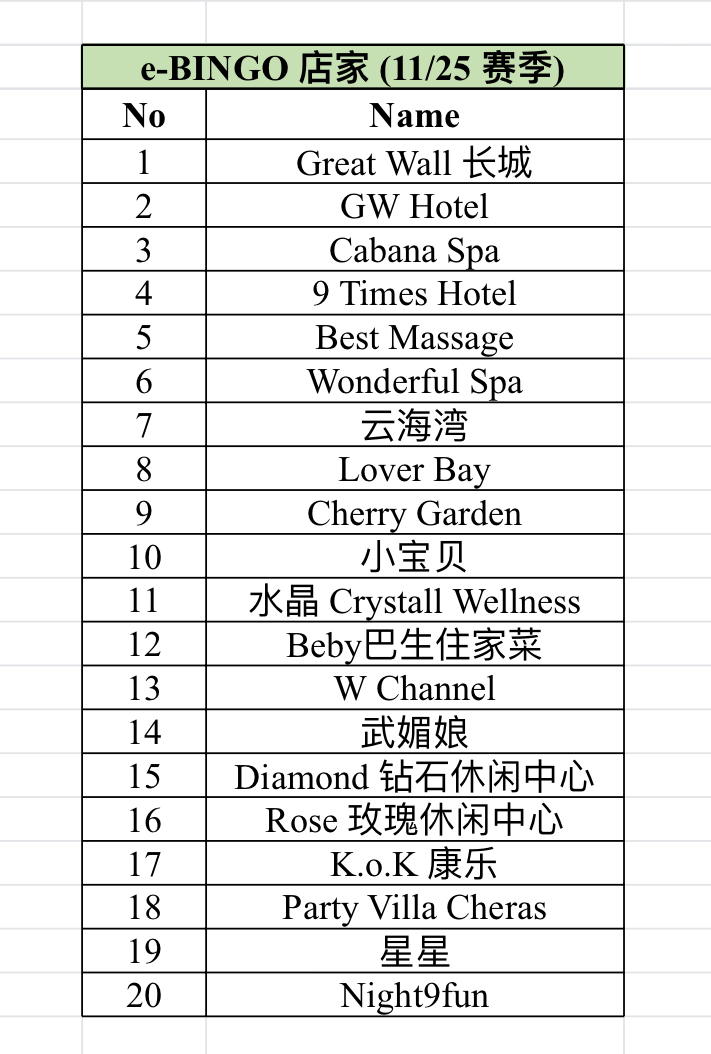 11/25赛季 e-BINGO的店家 :