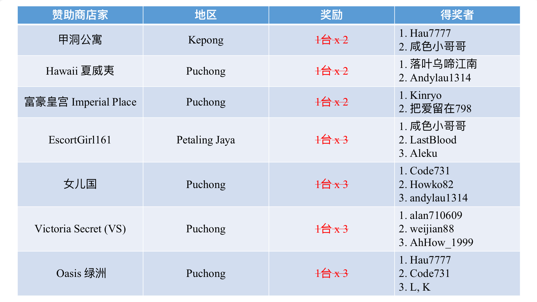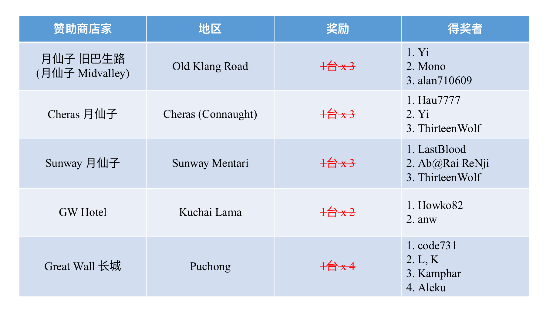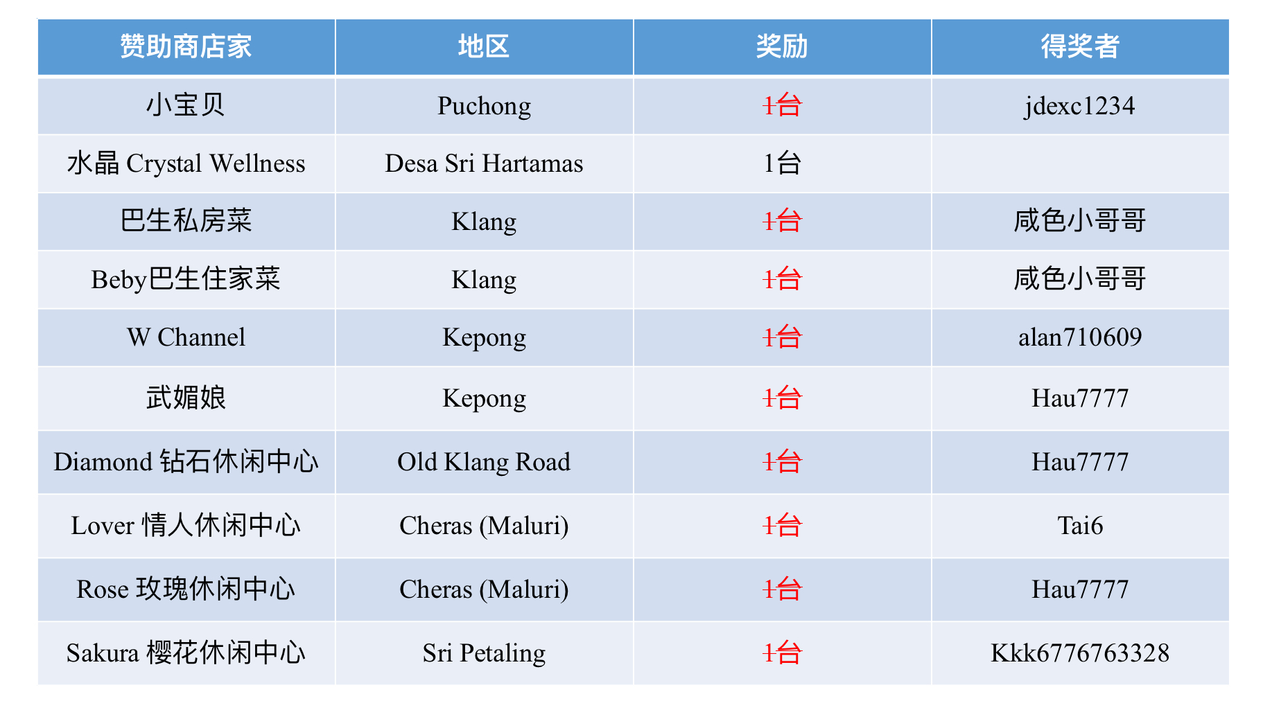 11/25赛季 e-BINGO的店家 :